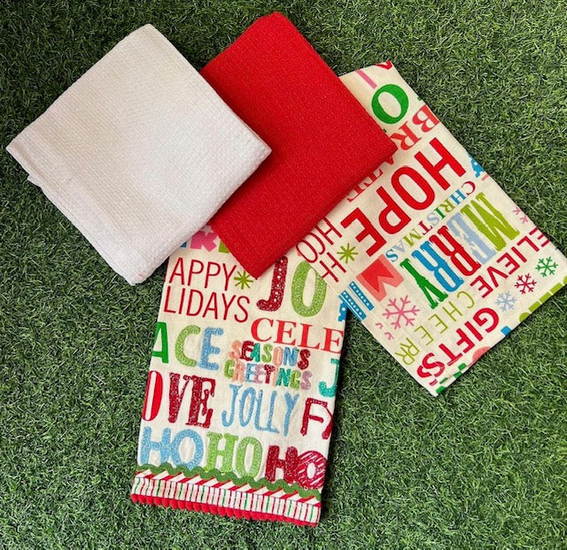 CHRISTMAS TEA TOWELS PACK OF 3 - CHRISTMAS WORDS