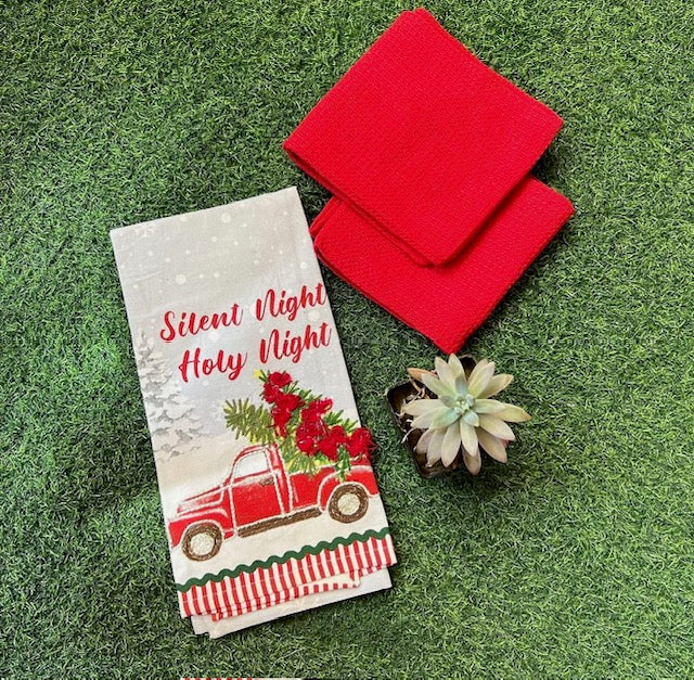 CHRISTMAS TEA TOWELS PACK OF 3 - RED TRUCK TREE