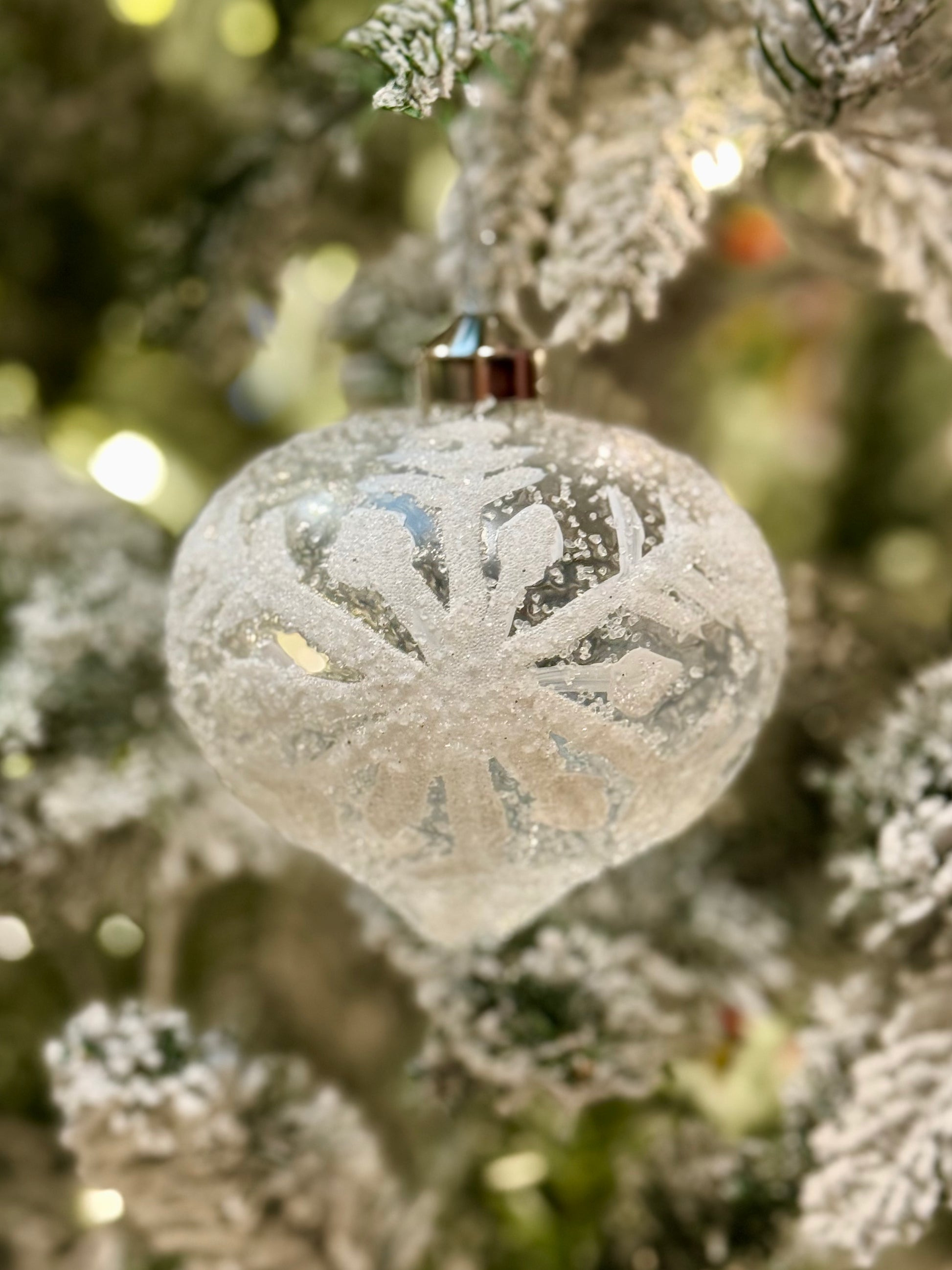 CLEAR FROSTED WHITE SNOWFLAKE ONION GLASS ORNAMENT ECI070