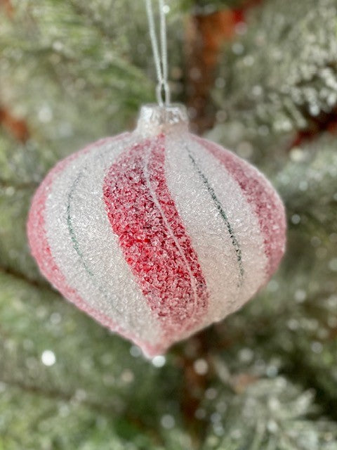 FROSTED PEPPERMINT TWIST ONION ORNAMENT GQAM052