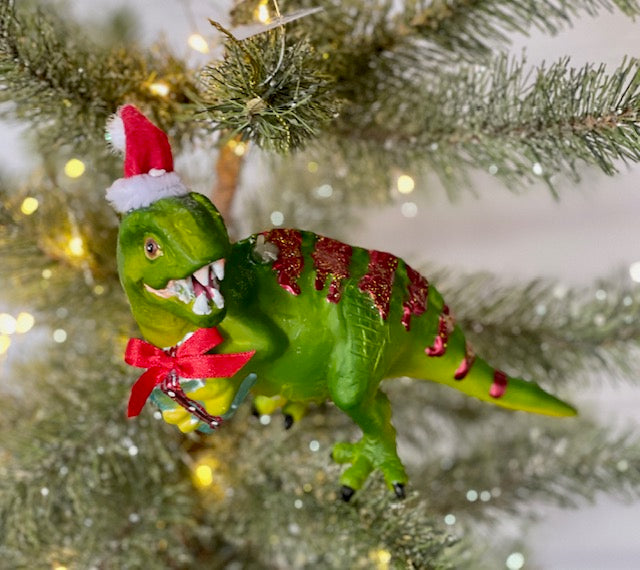 GREEN DINOSAUR GLASS HANGING ORNAMENT CXM045