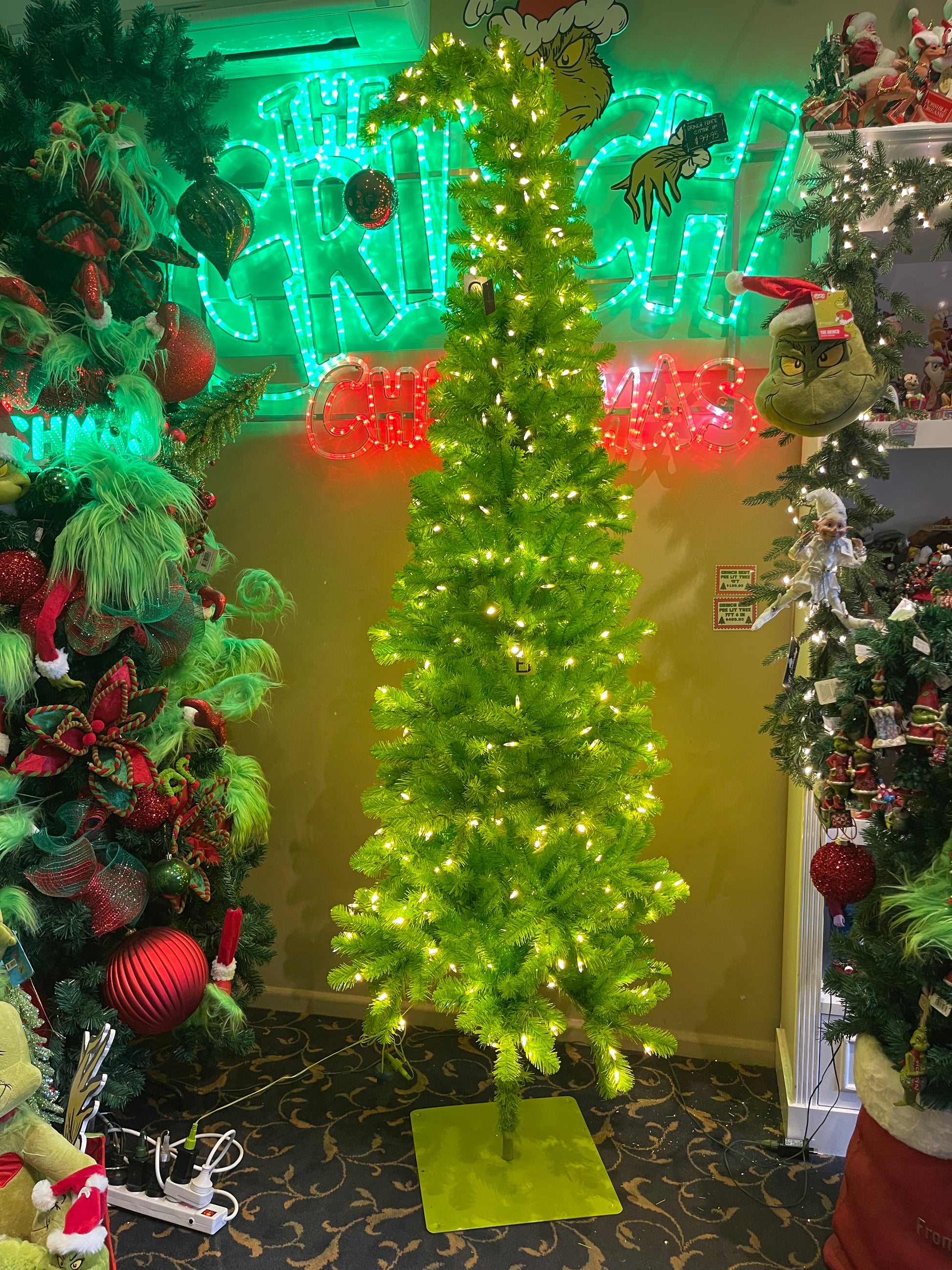 GRINCH GREEN PRE LIT 7.5FT BENT OVER TREE HZG77 (PICK UP IN STORE ONLY)