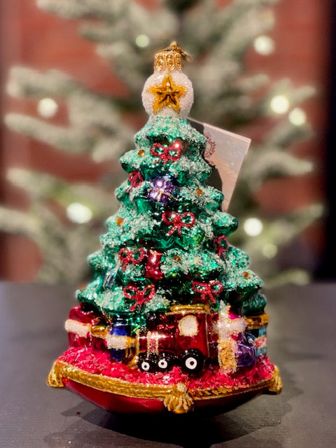 HURAS FAMILY GLASS ORNAMENTS - CHRISTMAS TREE ON PILLOW A401