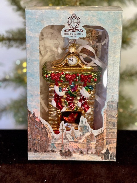 HURAS FAMILY GLASS ORNAMENTS - FIREPLACE WITH STOCKINGS S787
