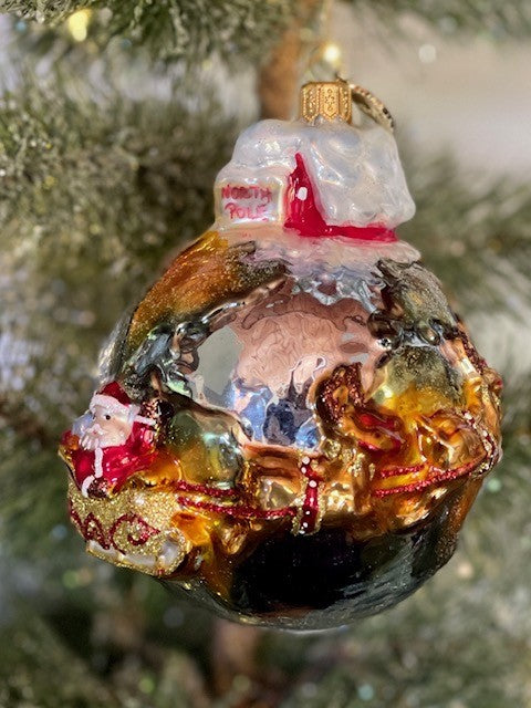 HURAS FAMILY GLASS ORNAMENTS - SANTA FLYING AROUND GLOBE S276