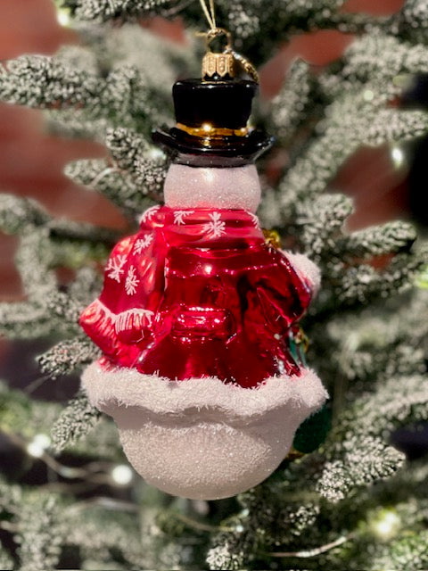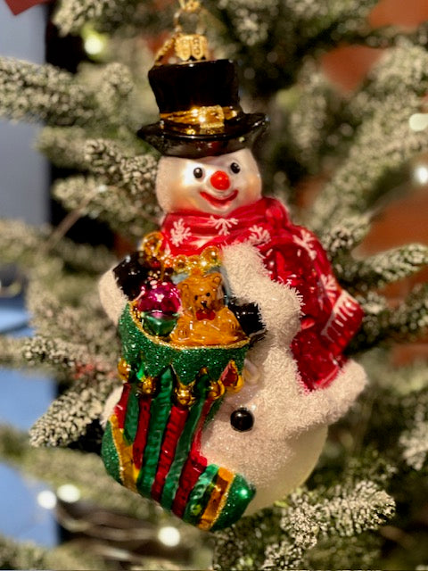 HURAS FAMILY GLASS ORNAMENTS - SNOWMAN IWTH STOCKING S397C