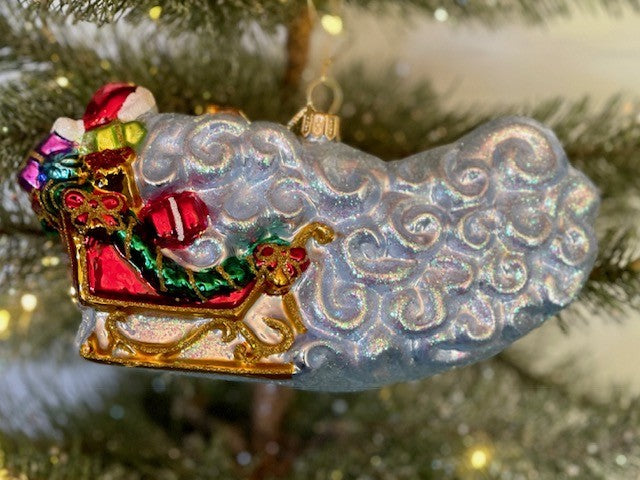 HURAS FAMILY GLASS ORNAMENTS - TRAVELLING SANTA ON CLOUD S348
