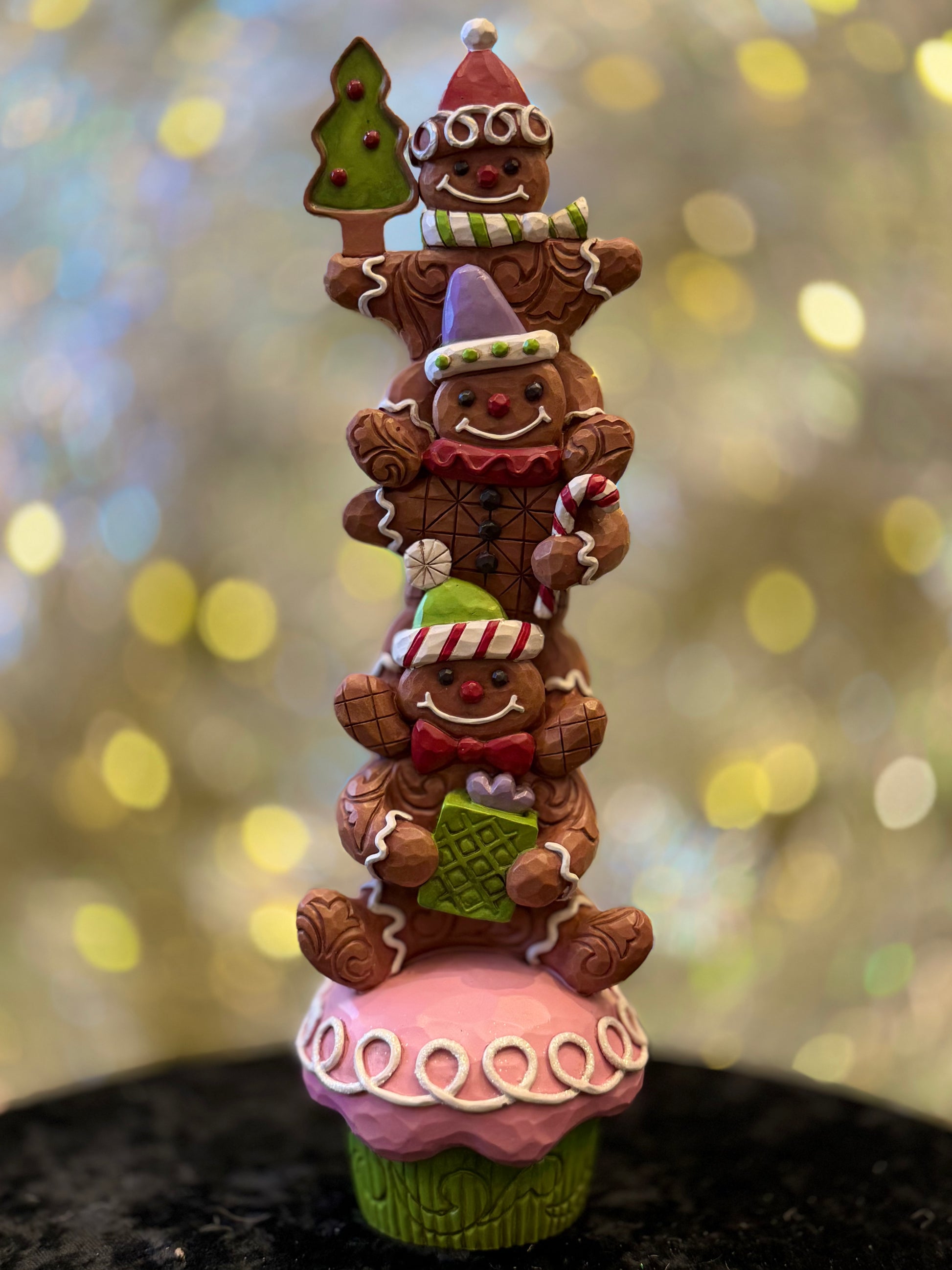 This delightful Gingerbread Christmas Jim Shore design features a festive cupcake topped with three cheerful gingerbread men, each adorned with colorful icing, candy, sprinkles, with signature Jim Shore patterning. They sure capture the joy and warmth of the Christmas season.