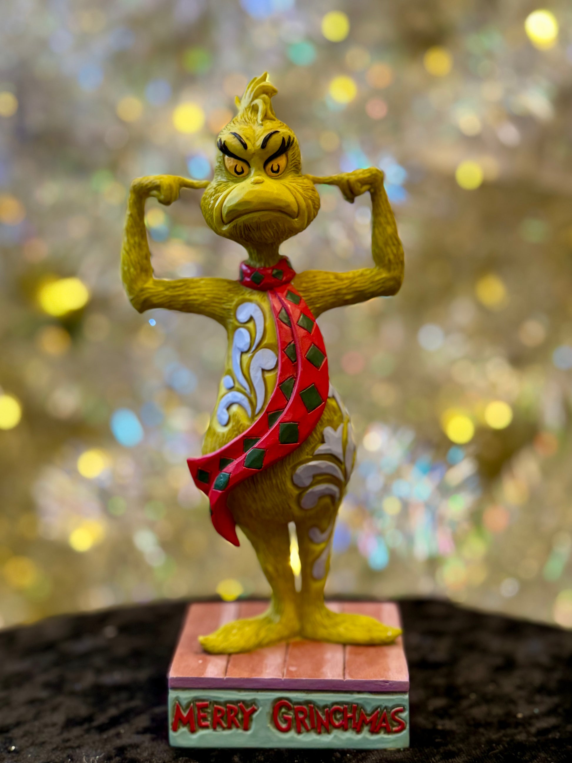 All aboard the Grinchy Express! In this charming Jim Shore creation, The Grinch steers a train engine adorned with delightful floral rosemaling. Max rides on top while Cindy Lou rings a real bell, bringing Seuss's classic tale to life with sound!