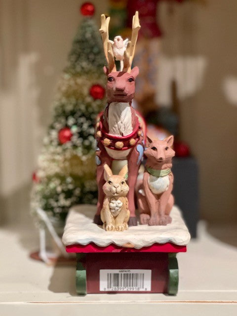 All aboard for Jim Shore’s Christmas Train! The next car in this annual series features a charming Reindeer surrounded by forest friends. A holiday heirloom sure to delight children of all ages with this whimsical design.