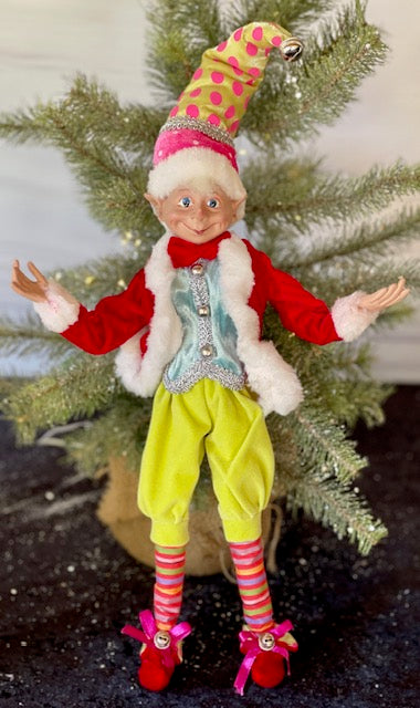 Let's get loud this Christmas with the Merry & Bright elf team. Lovers of all things loud, especially colour, these party elves know how to get a party started. So turn up the juke box, get on those blue suede shoes and twist `n shout your way through the festive season. Merry elf is 40cm.