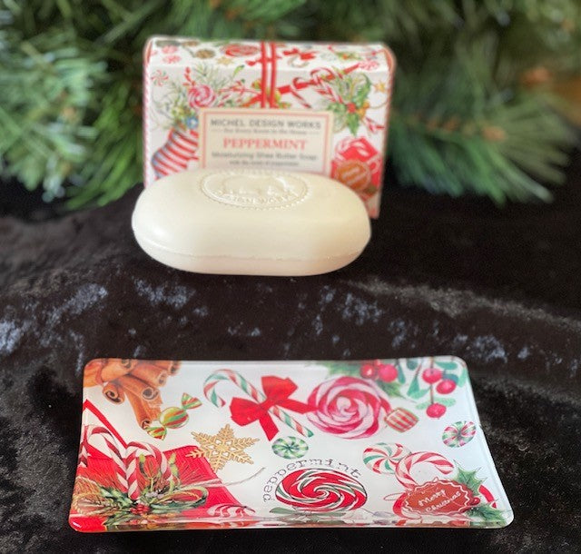 MICHEL DESIGN PEPPERMINT GIFT SOAP & DISH SET