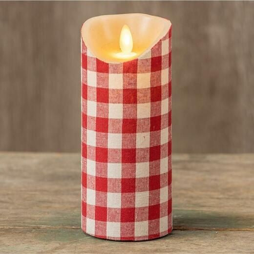 RAGON HOUSE RED & WHITE GINGHAM 7 INCH FABRIC PILLAR CANDLE