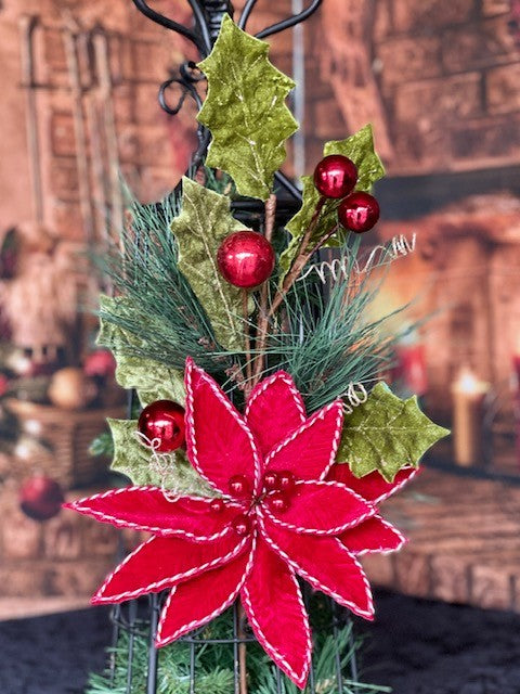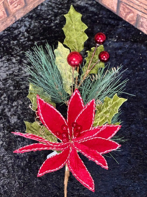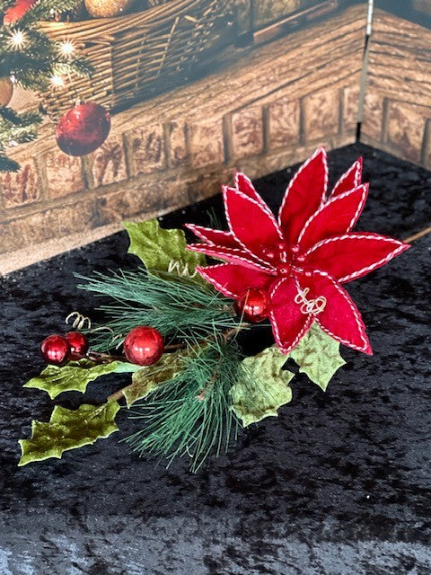 RED POINSETTIA, HOLLY & BAUBLE SPRUCE SPRAY F4160804
