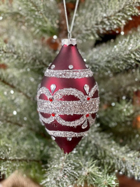 10CM DEEP RED WITH SILVER DETAIL TEARDROP ORNAMENT