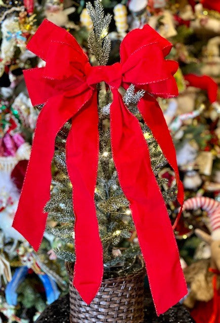 47CM X 28CM WIRED VELVET BOW. READY TO USE IN YOUR GARLAND, TREE, WREATH, LANTERN OR GIFT WRAPPING