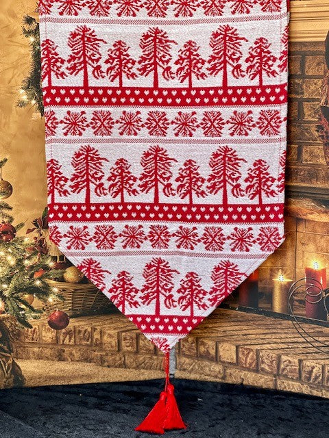 RED/WHITE FOREST TREE TAPESTRY TABLE RUNNER