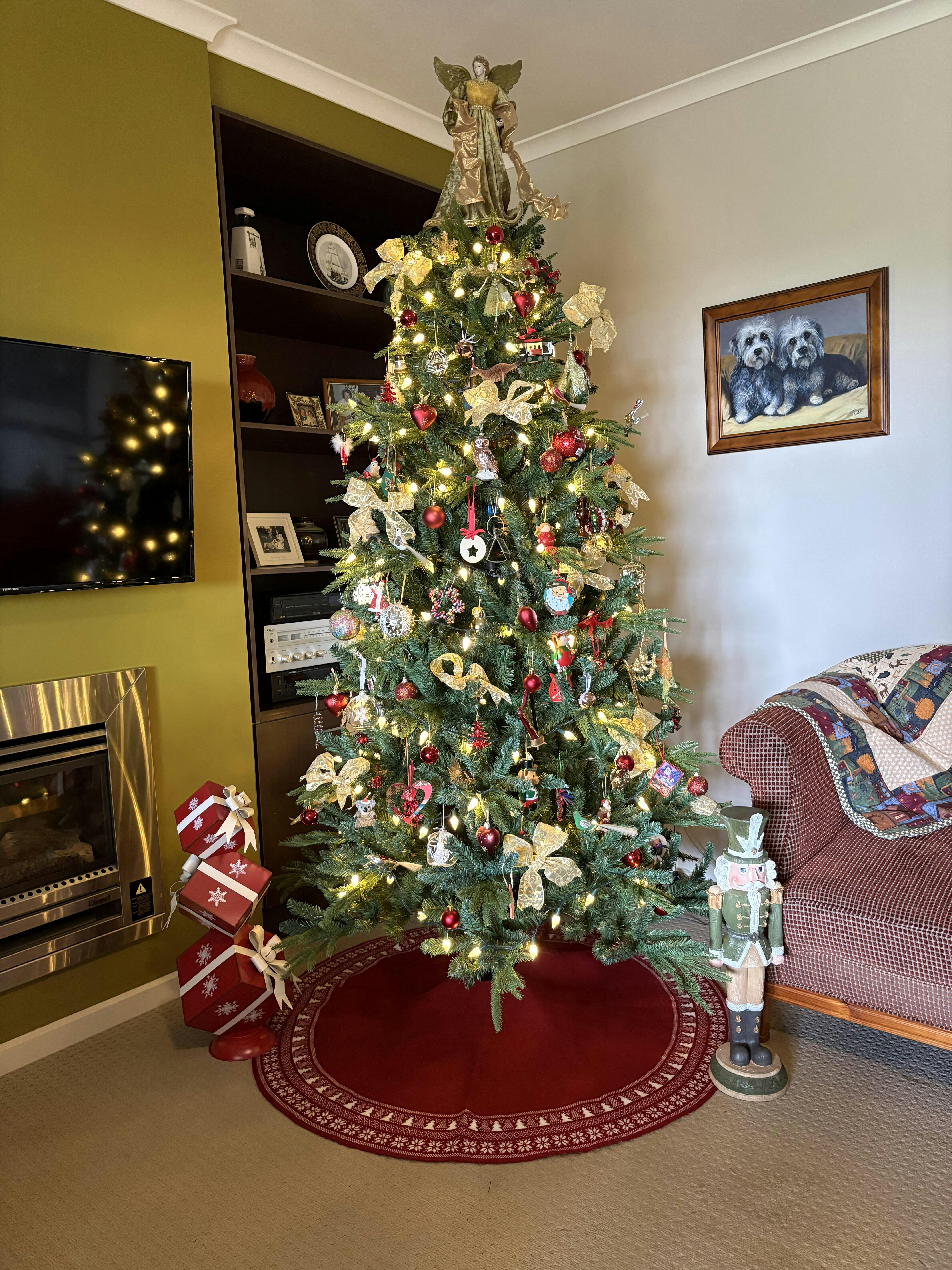 26CM X 66CM METAL RED/WHITE WITH BELLS PRESENT STACK