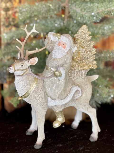 WOODLAND CHAMPAGNE SANTA ON REINDEER BXI051